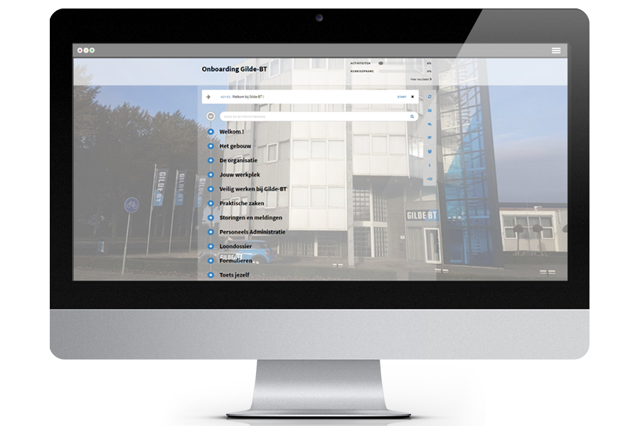 Een leuk idee, maar er is meer. Bij Gilde-BT werken er elke dag mensen verder aan (nieuwe) e-learningprogramma’s, dus de standaard ligt hoog. Zo moest ook deze pre-boarding aan wat eisen voldoen. De training moest afwisselend en laagdrempelig zijn en het liefst veel gebruik maken van interactieve filmpjes.