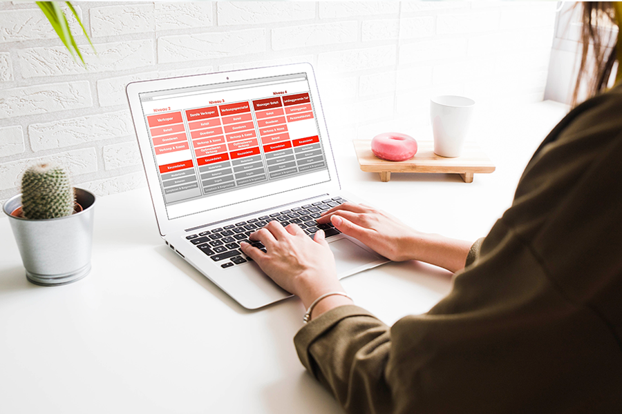 De eerste stap is het creëren van een mbo-traject dat naadloos aansluit op het bedrijf. Er wordt door NCVB Bedrijfsopleidingen nieuw lesmateriaal ontwikkeld dat relevant is voor de specifieke werkvloer, terwijl het nog steeds voldoet aan de eisen van het mbo-diploma. De toepassing wordt op die manier een stuk duidelijker voor de deelnemer. Daarnaast wordt er bij het maken van de content gelet op de taal en visuele stijl van het bedrijf. Door te kiezen voor dezelfde tone-of-voice en een bijpassend design, wordt het een mooi en consistent geheel. Het eindresultaat past hierdoor perfect bij de klant.